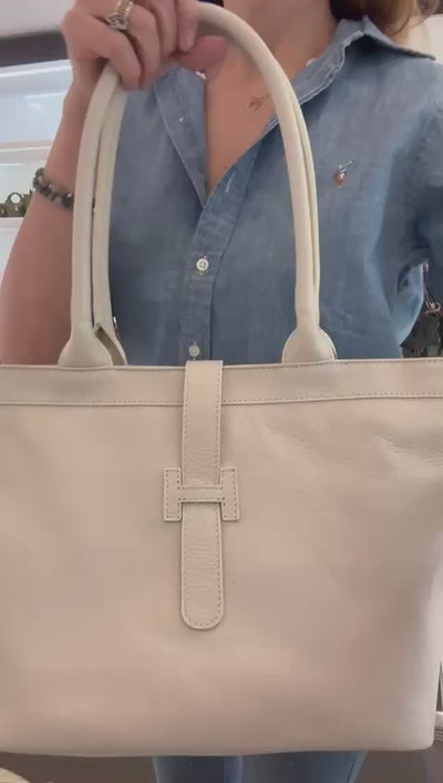 Lightweight Italian leather tote with decent size for everyday essentials. Includes keychain. Authentic craftsmanship from Italy. Shop Tyra Tote.